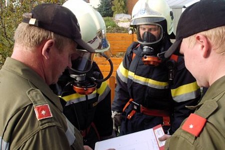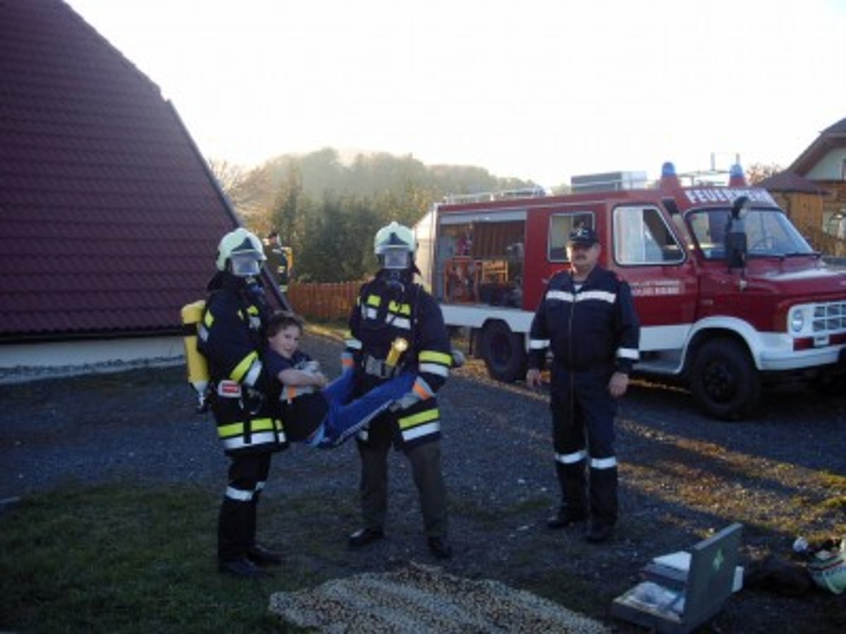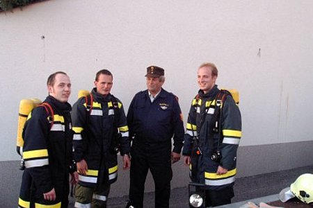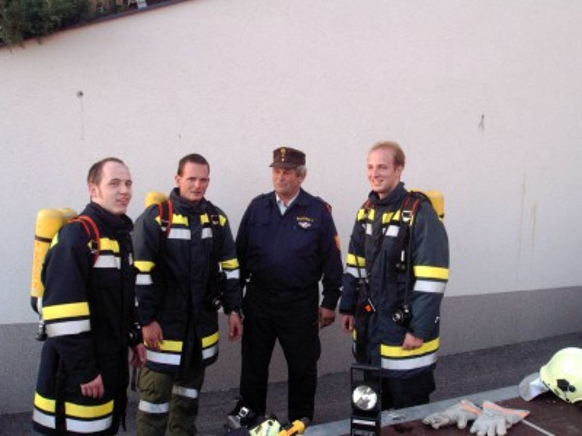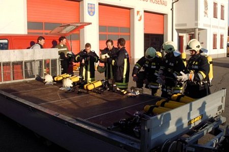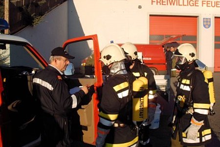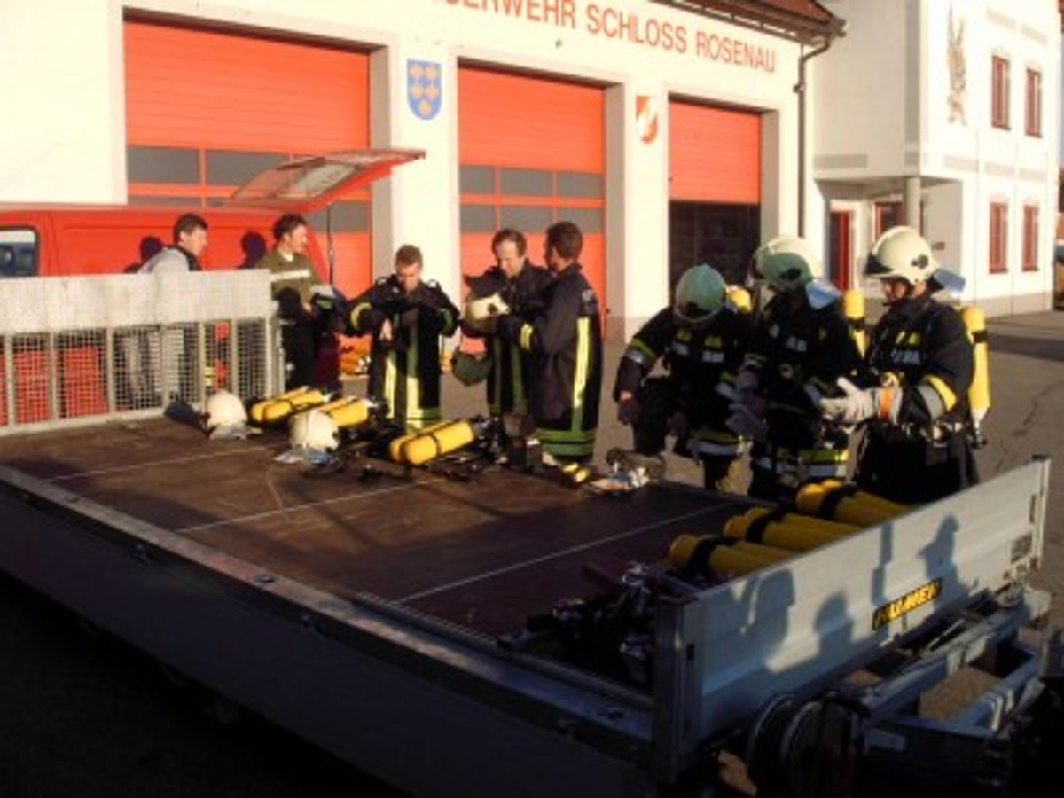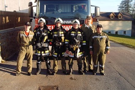 Am 22. Oktober fand die diesjährige Atemschutzübung in Schloß Rosenau statt. Unsere Kameraden rüsteten sich bei der Ankunft sofort mit schwerem Atemschutz aus. Dann ging es sogleich zum Sammelplatzleiter BR Burger. Hier wurde der Trupp eingewiesen. Nun ging es an die Arbeit. Beim Eingang angekommen wurde der Trupp mittels Lageplan eingewiesen, auch die zu verrichteten arbeiten wurden besprochen. Das Strahlrohr wurde aufgenommen und mit der Arbeit begonnen. Im verrauchtem Raum mit vielen Hindernissen musste ein Feuerlöscher gefunden werden, mittels Handfunkgerät die Art des Feuerlöschers und das Datum der Plakette durchgegeben werden. Als nächstes der Gefahrenzettel an einem Fass richtig gedeutet werden. Und als letztes noch ein Verletzter gesucht und gerettet werden.