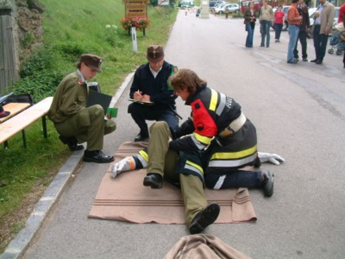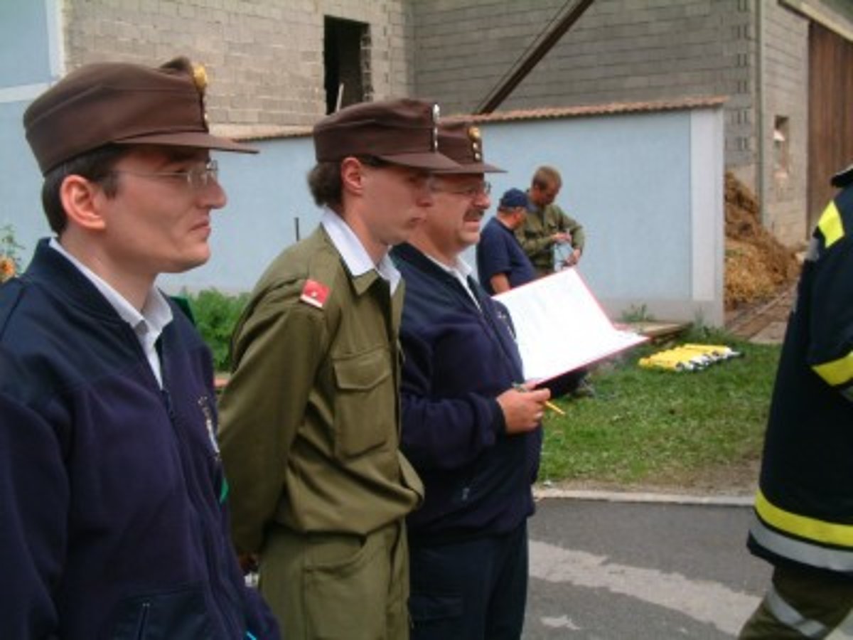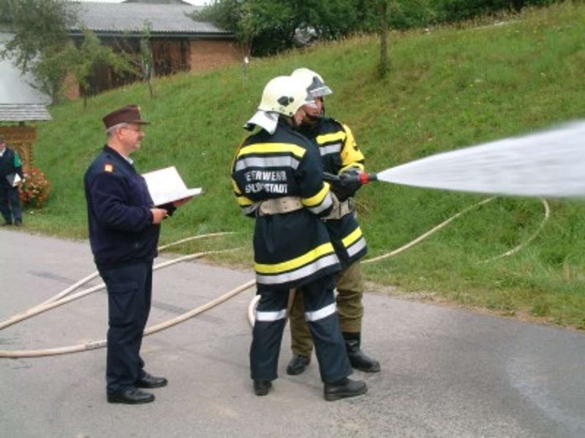 Das Bewerterteam um Brandrat Burger und HLM Edelmaier nahm die Prüfung ab. Erschwerend dabei war sicherlich, dass die Prüfungsabnahme vor den zahlreich versammelten Festgästen durchgeführt wurde. Brandrat Burger kommentierte das Geschehen für die Zuseher die alles sehr interessiert verfolgten.