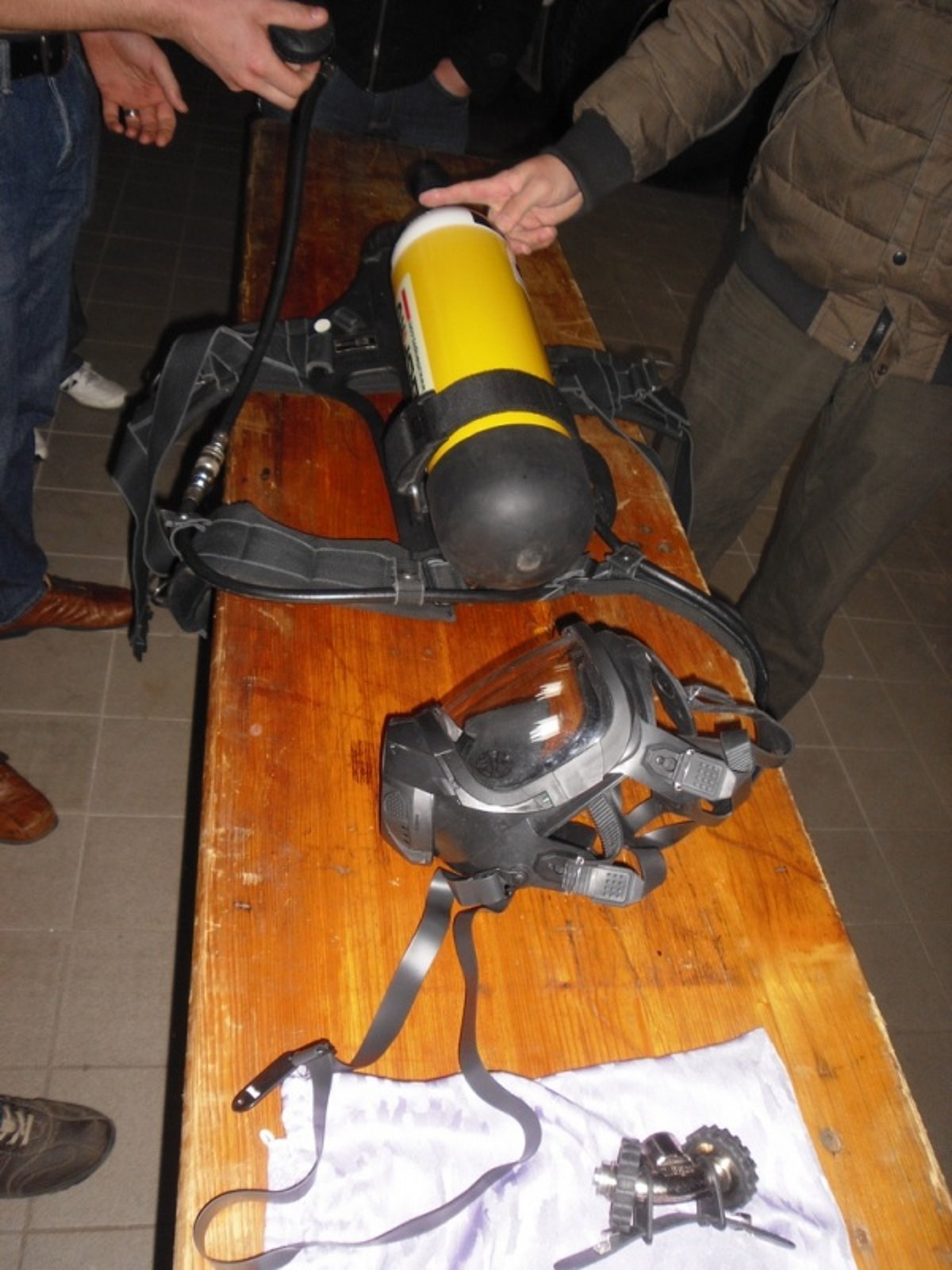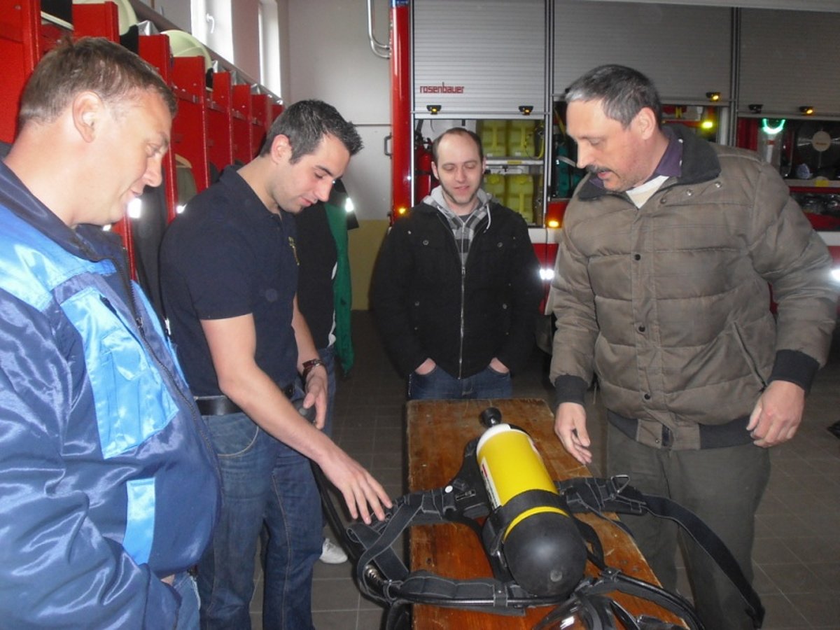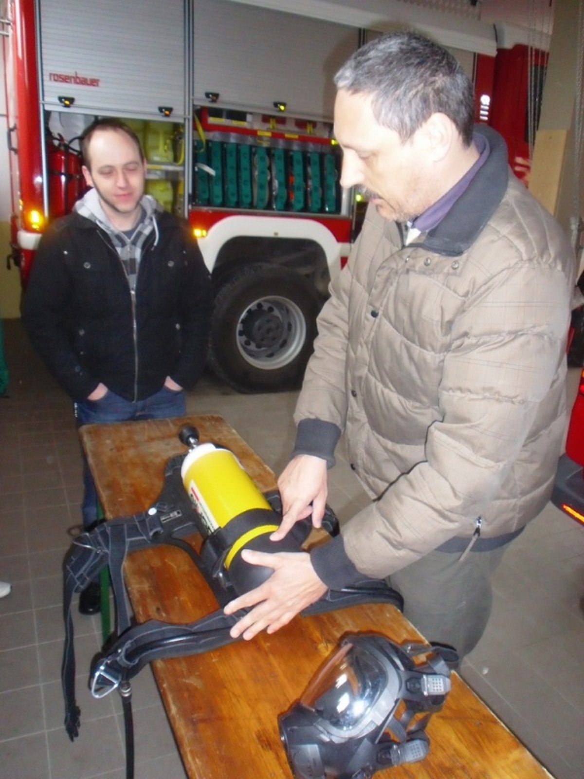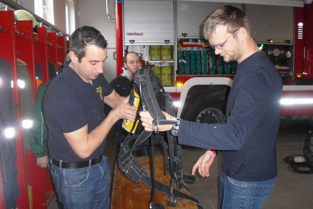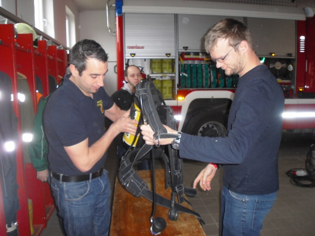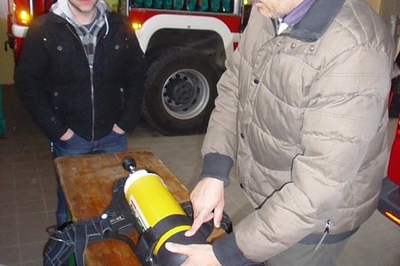 Atemschutz-Sachbearbeiter Reinhard Holzmüller stellte am Sonntag vormittag den interessierten Atemschutzgeräteträgern die neue Ausrüstung vor.