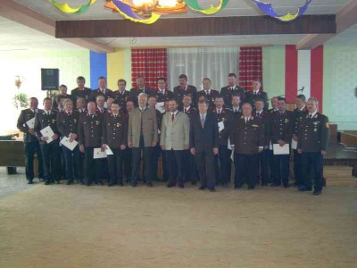 LM Josef Schaden und HFM Erich Edelmaier wurden anlässlich des Abschnittsfeuerwehrtages am 03.04.2005 für Ihre 25-jährige Tätigkeit auf Gebiet des Feuerwehr- und Rettungswesens geehrt. Das Ehrenzeichen wurde von Ing. Hans Penz (3.Landtagspräsident), Bezirkshauptmann Widermann, LAbg. ÖKR. Bgm. Karl Honeder sowie vom Bezirks- und Abschnittsfeuerwehrkommando verliehen. Die Feuerwehr Sallingstadt gratuliert herzlichst.