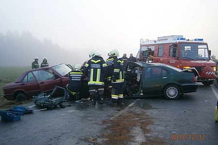 Beide Lenker wurden bei dem Unfall eingeklemmt und bereits von den inzwischen eingetroffenen Freiwilligen Feuerwehren der Umgebung mittels Bergegerät aus den Fahrzeugen geborgen und in der Folge mit dem Notarztwagen mit schweren, bzw. unbestimmten Verletzungen in das Landesklinikum Zwettl eingeliefert. Der Lkw-Lenker blieb unverletzt.