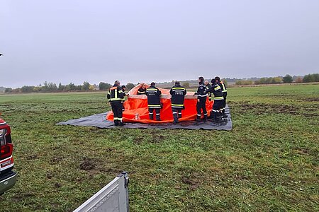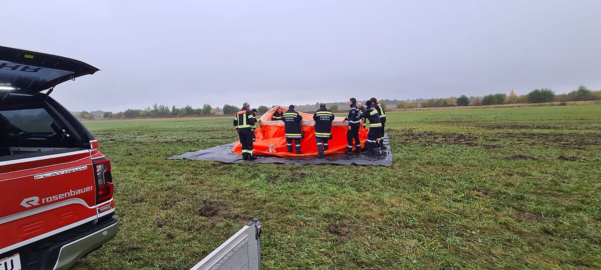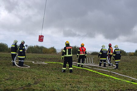 Wir unterstützten gemeinsam mit Mitgliedern der FF Limbach die Flugdienstgruppe bei der Herstellung der Transportleitungen und Errichten der Löschwasserbehälter.