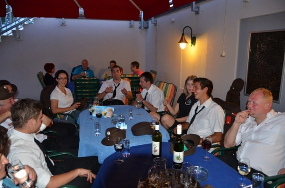Nach einem ausgesprochen lustigen und ausgelassenen Nachmittag brachte uns der Chauffeur Hermann Klein sicher wieder nach Sallingstadt zurück und im Schanigarten des Dorfwirtshauses ließ man den Tag mit einem letzten Glas Wein ausklingen.