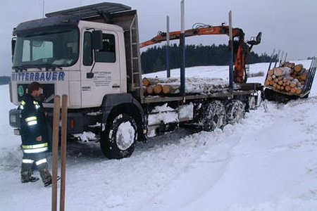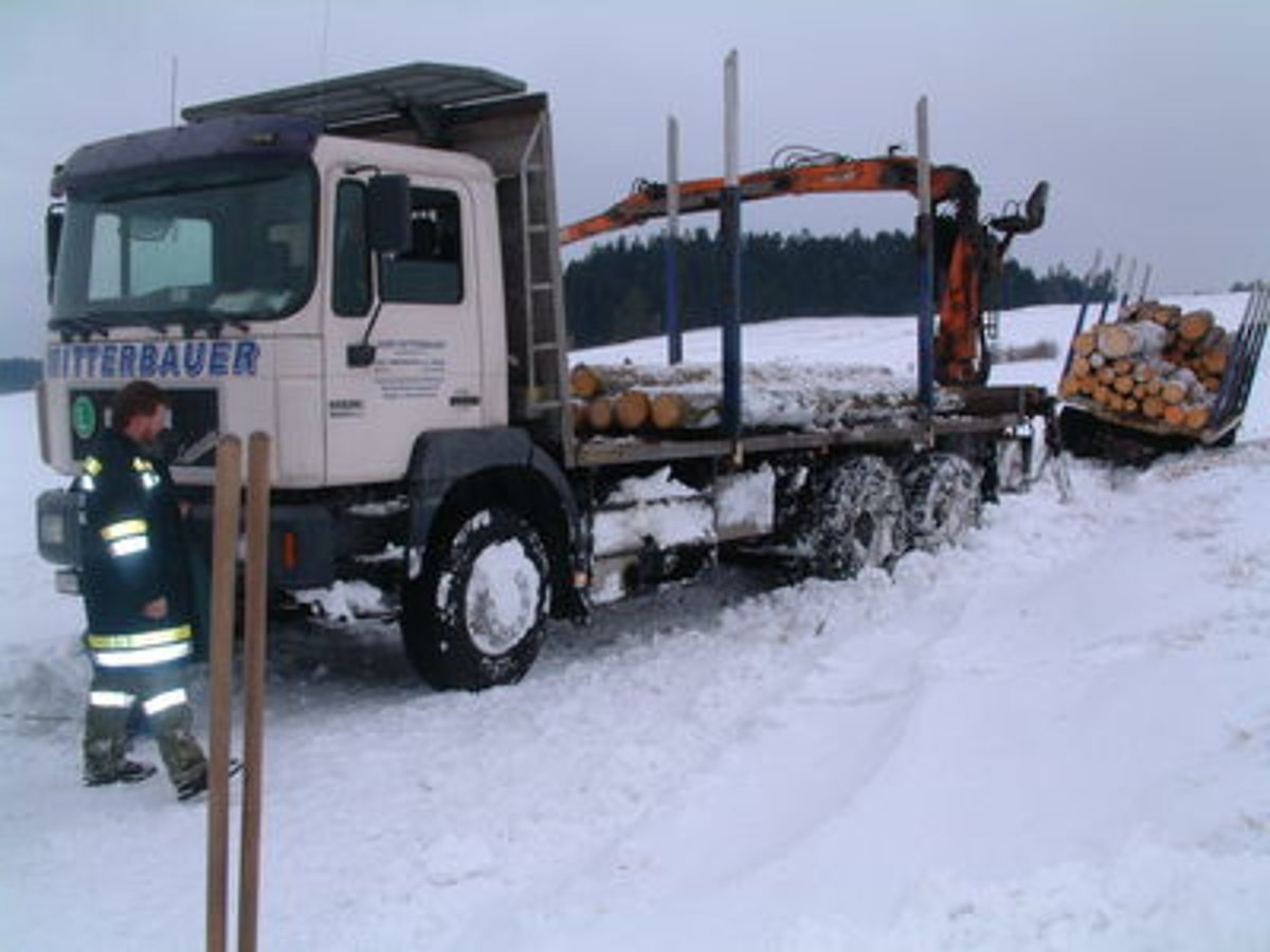 Am 08.03.2005 um 11.48 wurde die FF Sallingstadt durch Florian Niederösterreich (Landeswarnzentrale Tulln) mittels Sirenenalarmierung zu einer LKW-Bergung auf einem Gemeindeweg kurz vor Sallingstadt (ca. 100 m vor Haus Nr. 59 Reuberger) alarmiert. Die FF Sallingstadt rückte daraufhin mit TLFA 2000 mit Seilwinde und dem KDO und 8 Feuerwehrmitgliedern unter der Führung von HBI Poinstingl zum Einsatz aus. Ein Holztransporter der Fa. Mitterbauer war auf dem schmalen Feldweg aufgrund der starken Schneeverwehungen vom Weg abgekommen und in den Graben gerutscht. Mittels Holzrückewagen der Landwirte Martin Wally und Herbert Holzmüller wurde der LKW entladen und dann mit der Seilwinde des TLFA unter Mithilfe des Traktors von Kommandant Poinstingl geborgen. Der unbeschädigte Holztransporter konnte daraufhin seine Fahrt weiter fortsetzen. Die FF Sallingstadt rückte um 13.30 vom Einsatz ein und stellte die Einsatzbereitschaft wieder her.