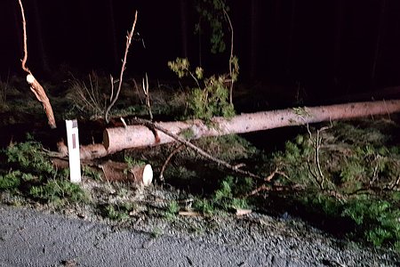 Auf der Straße zwischen den Ortschaften Perndorf und Walterschlag war durch den schweren Sturm in dieser Nacht ein Baum auf die Straße gefallen, auf diesem in weiterer Folge ein PKW aufgesessen und somit zum Stehen gekommen war.